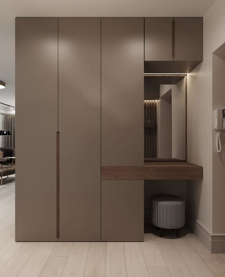 مصنوع من خشب ميلامين او كونتر و يتكون من وحدتين تخزين، الخزانة اليمني تحتوي علي شماعة، و الخزانة اليسري تحتوي علي 3 أرفف..